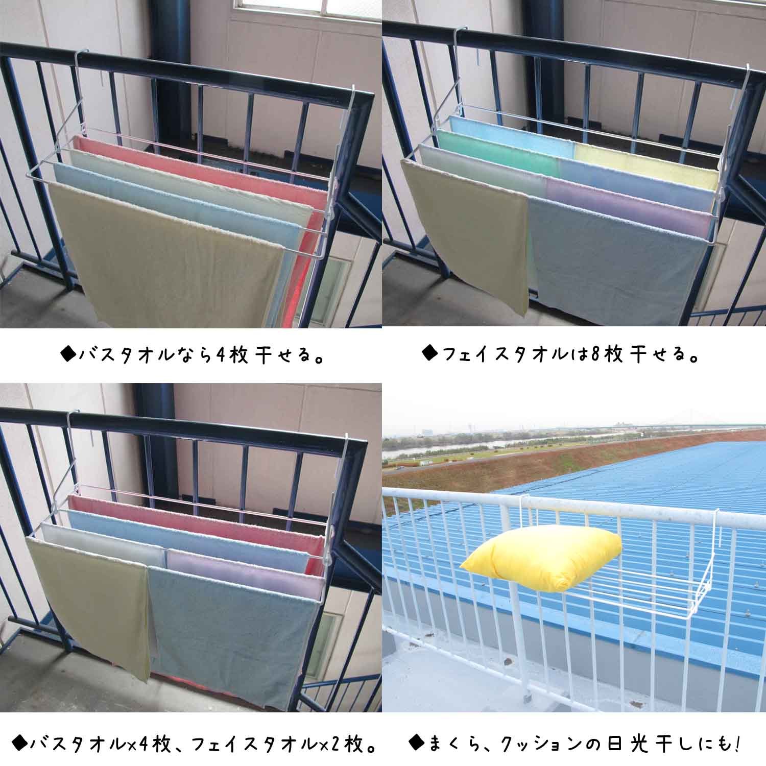 It is a towel hanger for a balcony that you can hang on a balcony or a handrail of a veranda easily! You can dry a bath towel and a face towel easily.