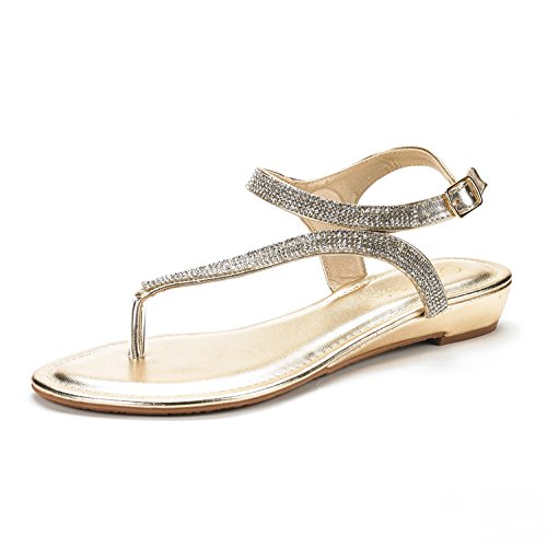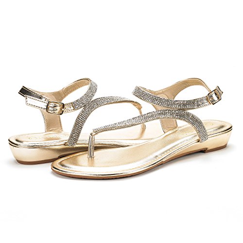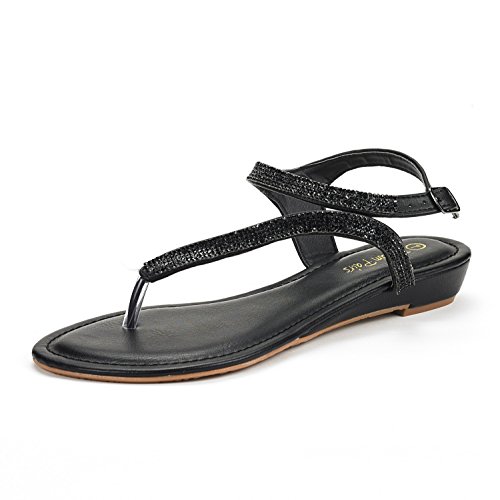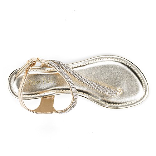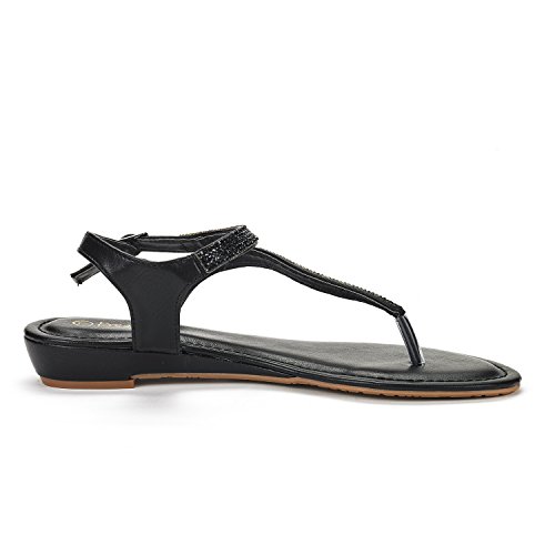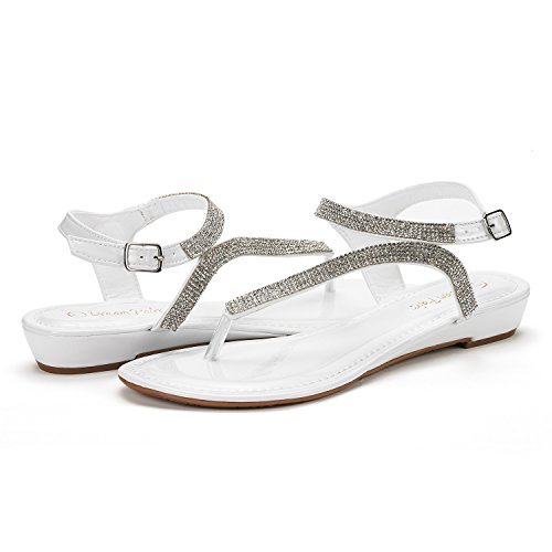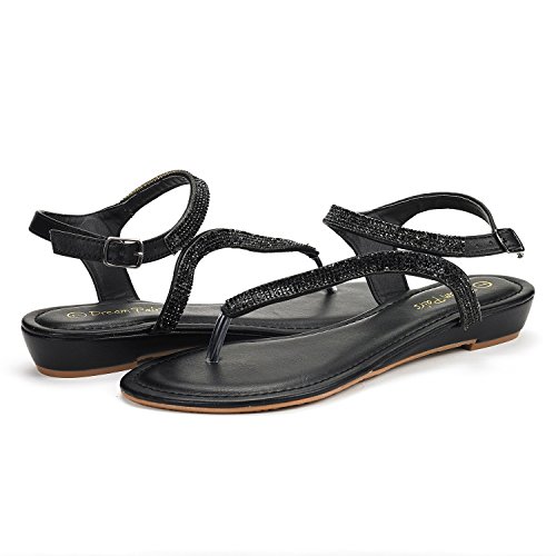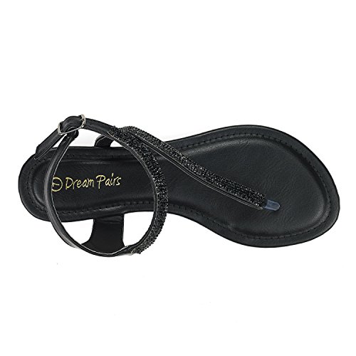 DREAM PAIRS SERPENT Women Rhinestones Strap Gladiator Flat Sandals
