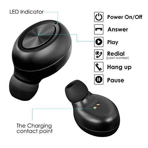 -. Feature : Super lightweight wireless Bluetooth Earbud :The tiny mini volume, hidden and invisible, it fits natural there, and makes others hard to notice.Feels good and nice on your ear, the Ergonomic designed to conform with the shapes of your ear and low weight there, comfortable sensation no matter you're indoor or outdoor jogging / HD QUALITY SOUND Wireless Invisible Headphone: HD microphone built in to offer you access to handsfree call which is ideal for chatting, or phone talking even when you're in car, owning better echo cancellation, noise suppression and stable signal brings you smooth communication each time without interference / HIGH-TECH BLUETOOTH 4.1 Car Headset : Advanced Bluetooth V4.1: support easy and fast pairing with Apple iPhone 7/7 Plus 6s/6s Plus, Google Pixel, Samsung, tablets, Samsung, LG V20,and other bluetooth-enabled devices. Connect the mini earbud with TWO smartphones at the same time, and the wireless range up to 33ft (10 meters) / ULTRA LIGHTWEIGHT Bluetooth Headphones: Ultra lightweight wireless headset: 3g, mini invisible design with one-button control, smaller than Q26 bluetooth earpiece, the bluetooth car headphone fits in ear perfectly until it goes off and leaves one ear free to the environment, providing safety / SUPER LONG ENDURANCE Earphone : The built in rechargeable 50mah polymer battery, embedded with optimal circuit to effectively lower down power consumption and save power to last longer, 4-6 hous music time, long standby up to 80hours