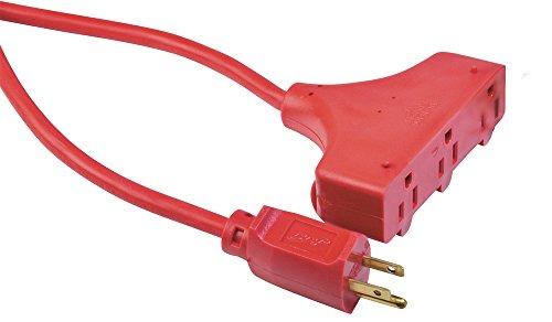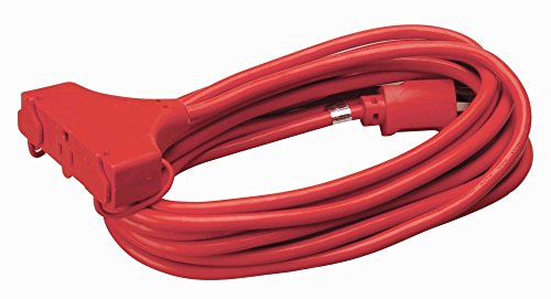 Coleman Cable 04217 14/3 SJTW Vinyl Outdoor Extension Cord, Red, 3-Outlet, 25-Foot