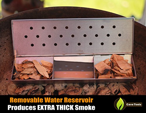 *** INSTANT 10% SAVINGS ON PURCHASE OF 2 OR MORE *** 25% THICKER STAINLESS STEEL REDUCES WARPING - Most smoker boxes warp immediatley but the Cave Tools smoking box won't - Great gift idea for mom or dad