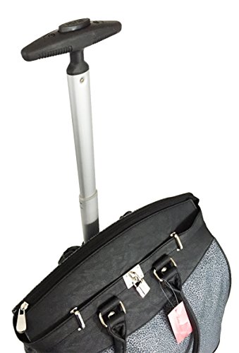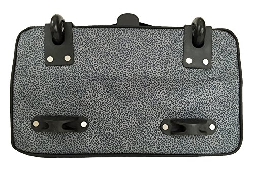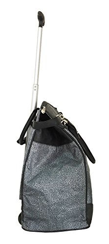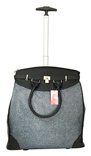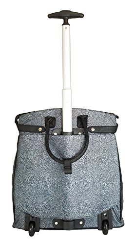 -. Binding : Electronics -. Brand : Trendy Flyer -. Color : Black and Gray -. Department : laptop-computer-briefcases -. EAN : 0765857885445 -. Feature : Color: Black and Gray / Padded laptop area can fit laptop 12" wide, 12" tall and 2" thick using securing velcro strap/Padded laptop area can fit laptop 12" wide, 17" tall and 2" thick without using securing velcro strap / Material: Polyester Canvas with PU Trim / Pattern: Cheetah / Size: 19" H x 17" L x 9" W / Weight: 4.4 lbs / Additional Info: Height From Top of Handle to Floor with Handle Fully Extended: 35" -. PackageQuantity : 1 -. ProductGroup : PC Accessory -. ProductTypeName : CARRYING_CASE_OR_BAG -. Title : Trendy Flyer Computer/Laptop Rolling Bag 2 Wheel Case Cheetah Gray -. UPC : 765857885445