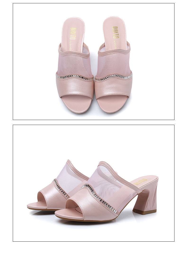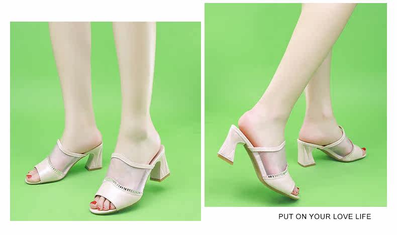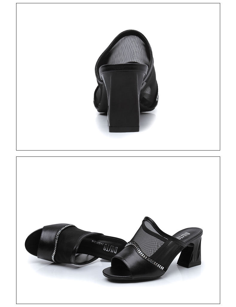 大东2016夏季新款韩版高跟粗跟一字拖女鞋凉拖
