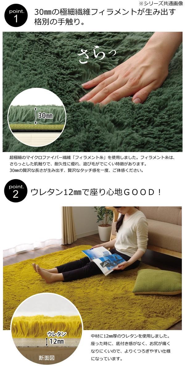 長毛マイクロファイバーフィラメント糸を使用したラグです。しっとりフワフワした優しいタッチ感に仕上げました。 |