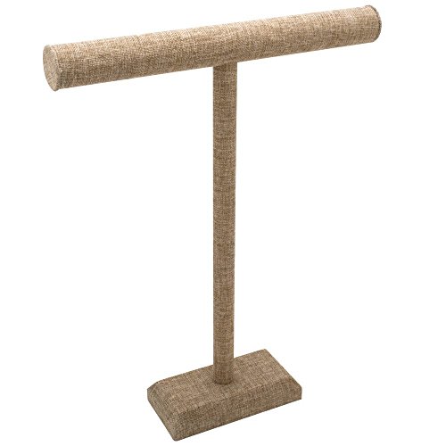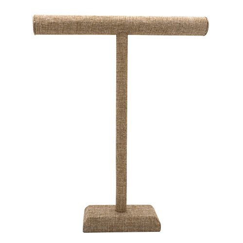 This T-bar is the perfect pick for displaying longer items! Ideal for displaying necklaces, ribbon, lengths of lace, and more. Covered in a sturdy burlap material, this T-bar display will set off brightly-colored gems, and works well with a wide variety of jewelry styles. Jewelry not included.