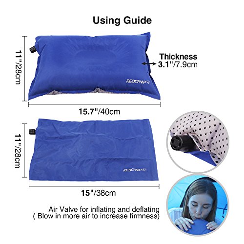 Inflatable Camping Pillow 2 Pack, 3.2oz Ultralight Inflatable Travel Pillow for Backpacking, Soft Top Fabric Anti-slip Base by REDCAMP