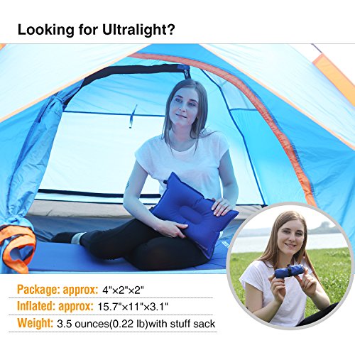 Ultralight and Portable:Lightweight backpacking pillow small size as same as a palm after folding.Weighs only 3oz - an ultralight camping gear for backpacker & all! Simply twist open the air valve and blow air into it. To deflate, open the bottom of the valve and roll the pillow towards the valve opening.