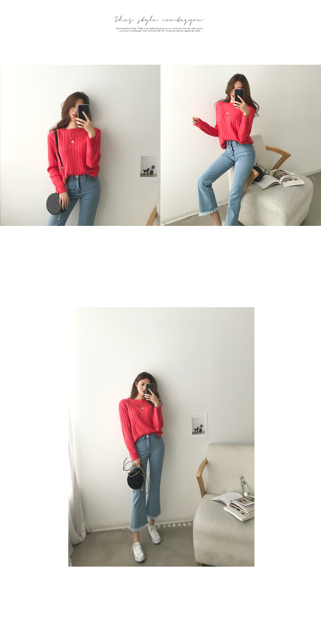 깔끔한 디자인이지만 결코 밋밋하지 않아 다가오는 봄과 너무도 잘 어울리는 니트 아이템이랍니다:)