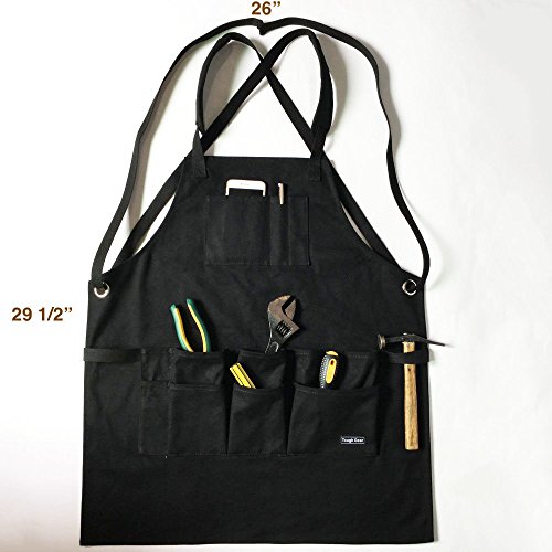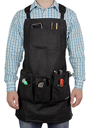 Smith Forge (Black) Heavy Duty Waxed Canvas Work-Shop-Tool Apron 11Pockets-Adjust SM-XXL