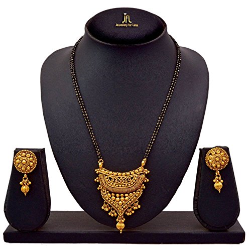 -. Feature : Plating : 22K One Gram Gold Plated. Material : Made from Good Quality Copper Alloy / JFL - Traditional Ethnic One Gram Gold Plated Designer Mangalsutra with Earring and Double Black Beaded Chain perfect for all Occasions / Earring Size :- Ht: 3.9 cm x Wd: 2.1 cm x Wt: 2 gms. Chain Length : 24 Inch, Pendant Ht x Wd: 6 x 4.8 cms / BRAND JFL :-JFL- Jewellery for Less - is a leading brand of Fashion Jewellery known for its quality products, collection & trusted by 1000s of customers worldwide. JFL sells the most phenomenal collection of Ethnic Fashion jewellery, American diamond, CZ, Kundan, Polki jewellery & lots more. Customers have been "Raving" about our "Curated Collection" ever since 2012. / QUALITY:-JFL follows the highest Quality Standards to ensure that you get only the best Quality - proven by our outstanding seller Feedback & product Reviews @ Amazon.Unique Collection, The Best Quality, Secure & Branded Packaging, Happy or Money Back Policy.