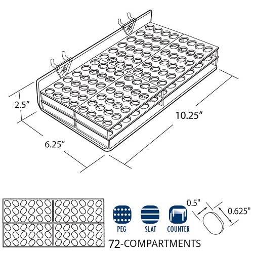 Azar Displays 225527-2pack 72-Compartment Cosmetic Tray for Pegboard, Slatwall/Counter Top (Pack of 2)