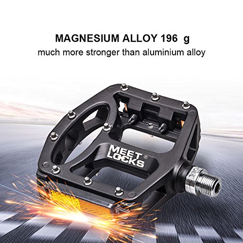 MEETLOCKS injection magnesium alloy body Bike Pedals, are designed in Cr-Mo CNC machined 9/16" screw thread spindle and ultra sealed DU bearings.Which is a good choice for the riders who want to have strong, light and wide pedals in the long riding journey.