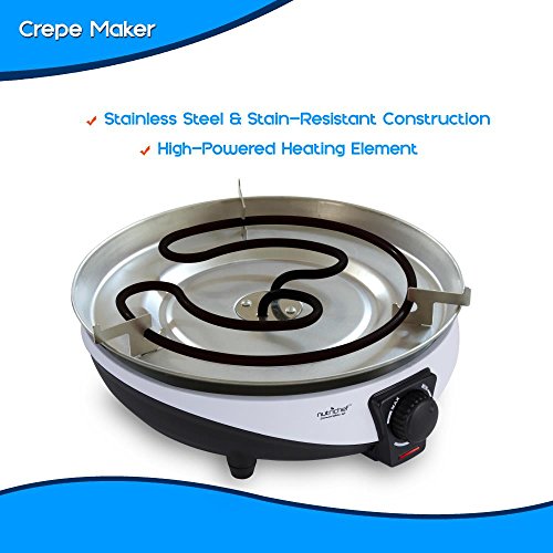 MAKE PERFECT CREPES: Concocting mouthwatering crepes and blintzes is simple with the Nutrichef Crepe Maker. The 11.8" inch cooking diameter is perfect for cooking traditional crepes.