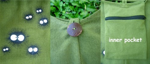 "Kurosuke", "Susuwatari", "dust bunnies" or "soot sprites" Hand make cotton shoulder bag from Studio Ghibli anime "Spirited Away " and "My Neighbor Totoro"