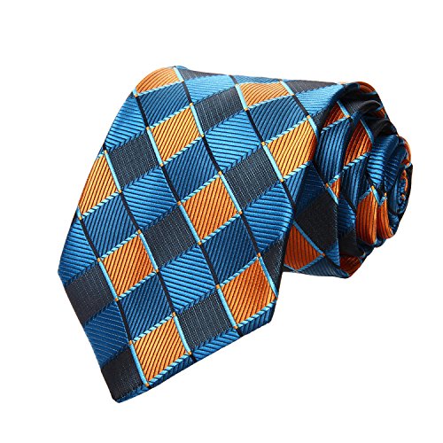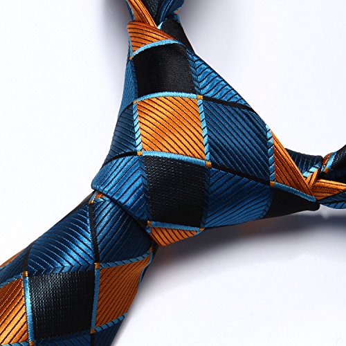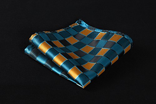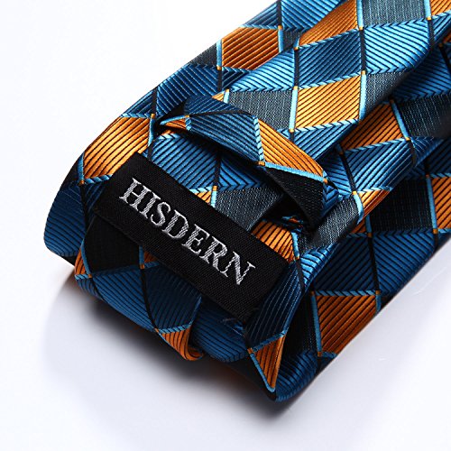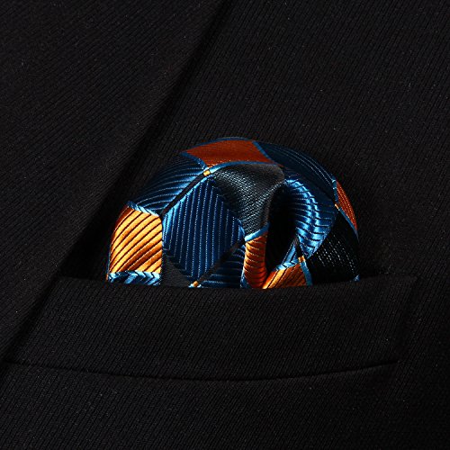 Hisdern HISDERN Herren Krawatte Taschentuch Check Krawatte & Einstecktuch Set Aqua & Orange