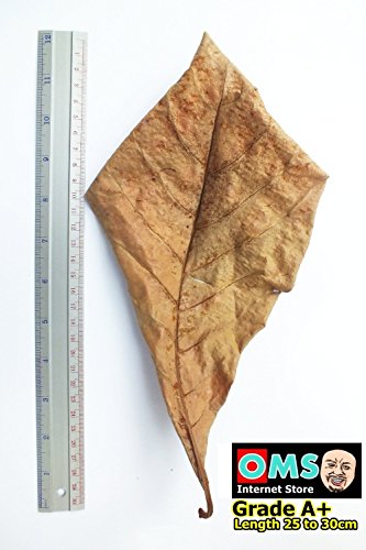 Scientific Name: Terminalia Catappa Leaves Common Name: Indian Almond Leaves, Tropical Almond Leaves, Sweet Almond Leaves, Wild Almond Leaves, Sea Almond Leaves, Catappa Leaves, Java Almond Leaves, Ketapang Leaves. Indian almond leaves have been widely used by Asian breeders of tropical fish (Angel fish, Arowanas, Cardinals, Corydoras, Discus, Betta etc) to stimulate breeding and promote health and vitality in tropical fish. They love it! We have feedback from customer that her betta is making bubble nest immediately after she placed the first leaf into her tank. Shrimps like to feed on the nutricious leaf after it softens in water. You can add the leaf directly into the tank or may be boiled and the extract to be added into the tank. Other Benefits -Simulate black water condition which is the natural environment for the tropical fish and shrimps. -Cure sick fish of bacterial infections and to help speed up healing of damaged fins or body injuries. However it is not a magic "cure-all", especially when dealing with diseases like dropsy, velvet etc. think of it as more of a preventative medicine. -Enhance fertility of fishes -Contain humic acids and tannins which have anti-bacterial & anti-fungal properties. -Contains chemical that will bind with ammonia in the water. -Contains calcium needed to activate the muscles and to develop strong bones, teeth and scales. -Enhances the natural color of the fish -Lowers the pH of the water and absorbs harmful chemicals. -Adds essential trace elements to the water. -Recommended for all fresh water fishes kept in small containers without filters, specially during transportation.Feature