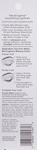 Helps define and brighten your eyes with Neutrogena Nourishing Eyeliner. Rich, luminous color glides on smoothly to enhance eyes all day without smudging or fading. Subtle light diffusers make whites of eyes appear whiter, while olive oil and rainforest shea butter add nourishment. The built-in sharpener allows for precise application and definition, and the contoured smudger helps you achieve a soft, blended look. This dermatologist- and ophthalmologist-tested eyeliner is safe for sensitive eyes and contact lens wearers, and removes easily with Neutrogena Oil-Free Makeup Remover.Feature