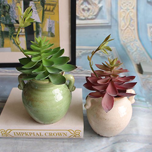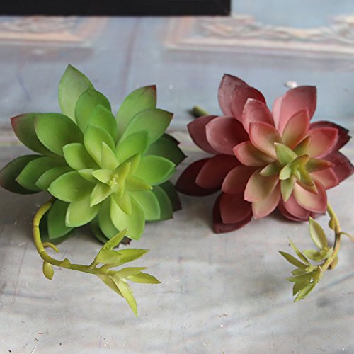 Supla 2pcs Real Looking Faux succulents Artificial succulent Soft Plastic Succulent Pick in Green and Burgundy 11“Tall x 5“ Wide