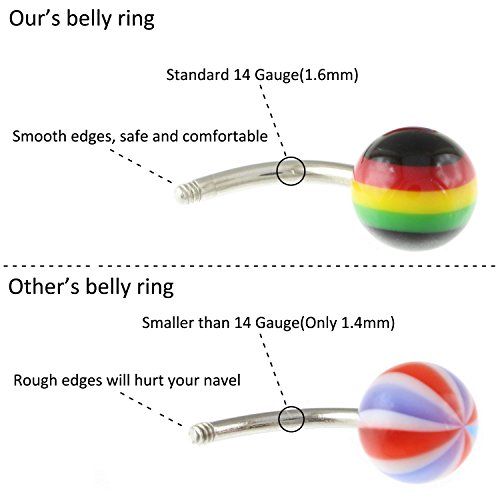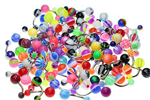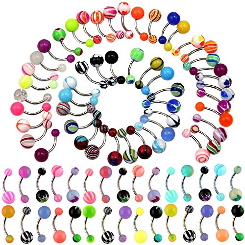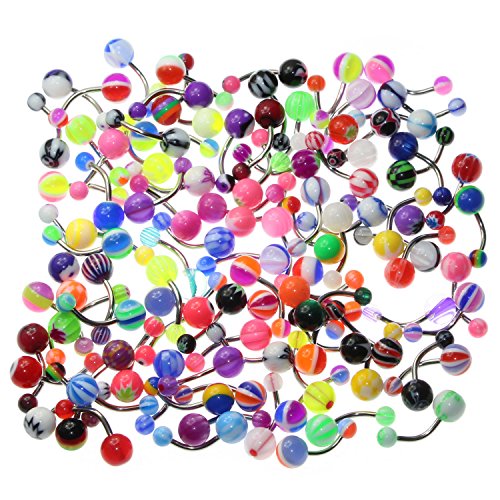 Oasis Plus Wholesale Lot 100pcs 14G Belly Button Rings Navel Barbell Acrylic Balls 316L Surgical Stainless