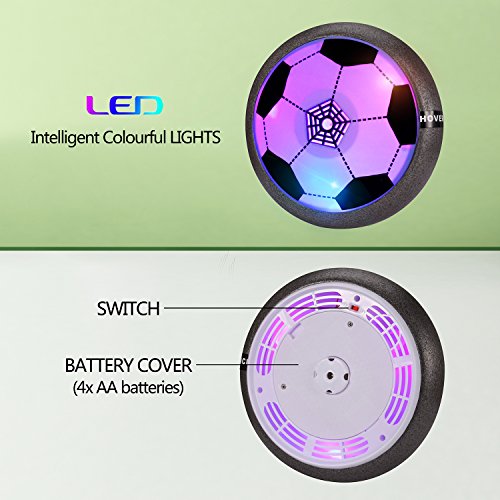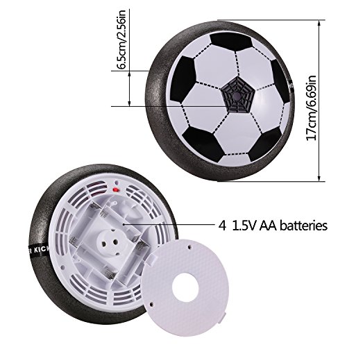 Studio : Vesena Publisher : Vesena Binding : Toy Product Description The Vesena hover ball shall be the perfect boy toy for outdoor and indoor games, with which your kids can enjoy wonderful group games. It is a good parent-kid interaction toy as you can play with kids together, both to attract the child's attention, to enhance the feelings between your family while enhancing curiosity and exercise the child's thinking ability. With the modest size of 7.5" which is similar to Size 4 soccer, More suitable for multi-player. As long as you have a flat surface, there are many ways you can play. It has a powerful hover action that makes the Air Power Soccer Disk literally float on a cushion of air. the soft cushion of foam surrounding the edge protects your furniture and wall while allowing for great rebounding. Use Guidance ?Use the little screwdriver to open the battery cover. ?Install 4 "AA" batteries (not included) to the right places and put the cover on. ?Switch the power button at the bottom, put it on a smooth surface and kick it just like a real soccer.