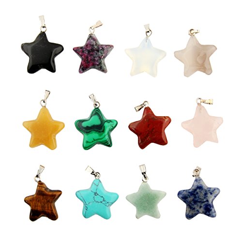 Assorted Star Shape Healing Chakra Beads Randow Color Crystal Stone Quartz Pendants for Necklace Jewelry Making (30pcs)