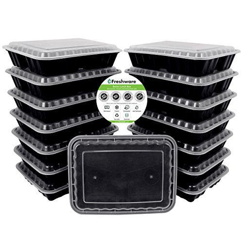- VERSATILE FOOD STORAGE CONTAINERS: The convenient dimensions (9.8 x 7.5 x 1.7") and the thoughtful division of this set makes these reusable plastic food prep containers great for a variety uses, including restaurant & deli takeout, bento box for work, foodsavers, and are recommended by fitness experts for meal prep, portion control, and 21 day fix. Trust a 5-Star Product and the LIFETIME Replacement or Refund policy of Freshware. Order Yours Today!