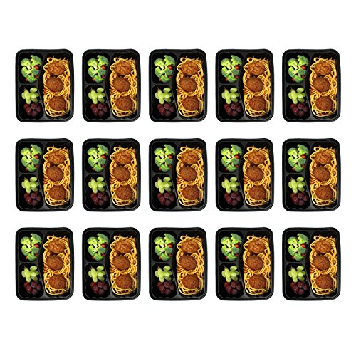 - A COMPLETE MEAL IN ONE BOX + PORTION CONTROL: This 15-Pack set of Bento Boxes features 3 different compartments so you can freeze or take with you a complete meal just in one container. Use them for your main course, salad and dessert and enjoy your meal everywhere, hassle free. Each meal prep container can store a total of 36oz (20-8-8 oz) which are the perfectly controlled portions to stay full, yet fit and healthy!