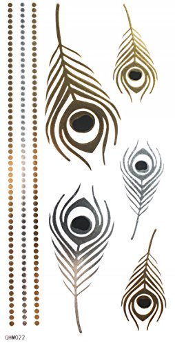 Gold & Silver & Black Jewelry and feather design Metallic Temporary Tattoos, tattoo Size: 6.69"x3.94"