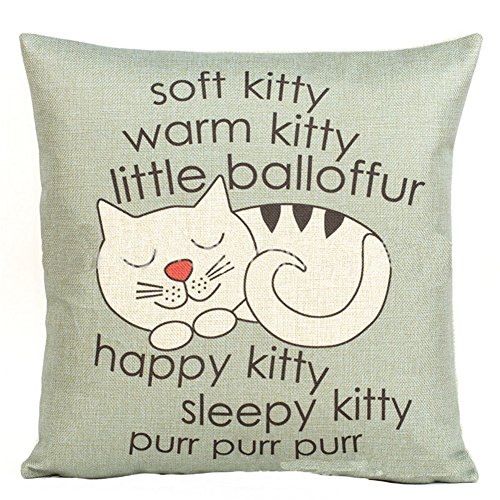 Decorbox Happy Sleepy Kitty Print Cat Pillow Cushions Cover Throw Pillow Cover For Sofa Office Decorative Pillowslip Gift Ideas Household Pillowcase 18" x 18"