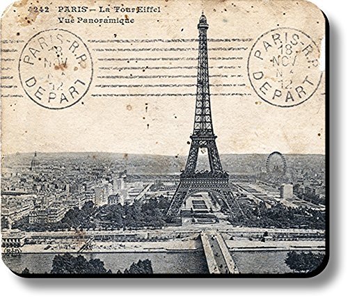 Decorative Mouse Pad Art Print Eiffel Tower Paris Stamped Postcard