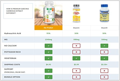 -. Feature : 100% Premium Garcinia Cambogia 95% HCA Pure HCA - No Filler No Binders , 100% Natural & 100% Pure Garcinia Cambogia Weight Loss Supplement made in the USA. / Blocks Body Fat Product - Suppresses Appetite - Increases Metabolism - Fat Blocker - Top Selling Weight Loss Supplement in the World / Highest HCA in the World - Buy from a USA Seller Manufacturer Direct- FDA Facility Approved - GMP Approved Product.