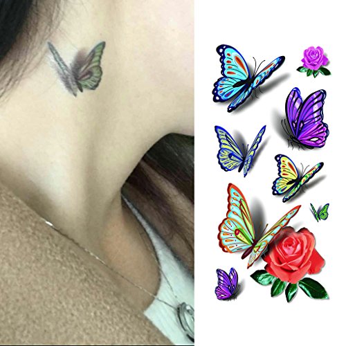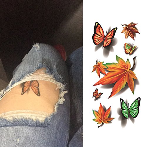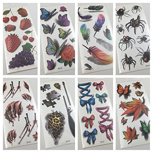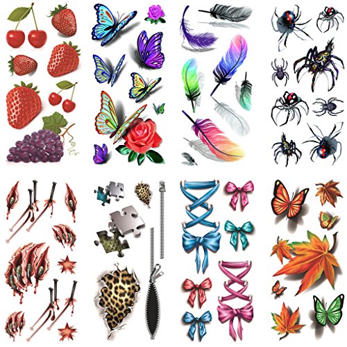 Oottati 8 Sheets Assorted Temporary Tattoo 3D Multiple Flowers Feather Butterfly Spider