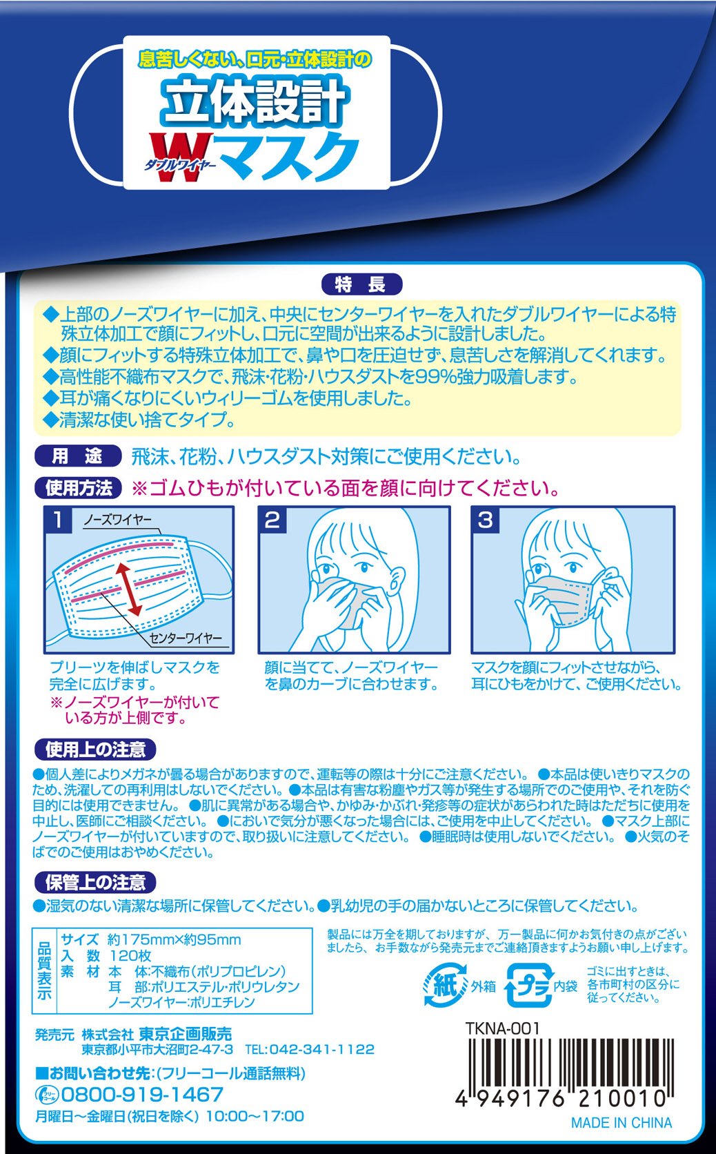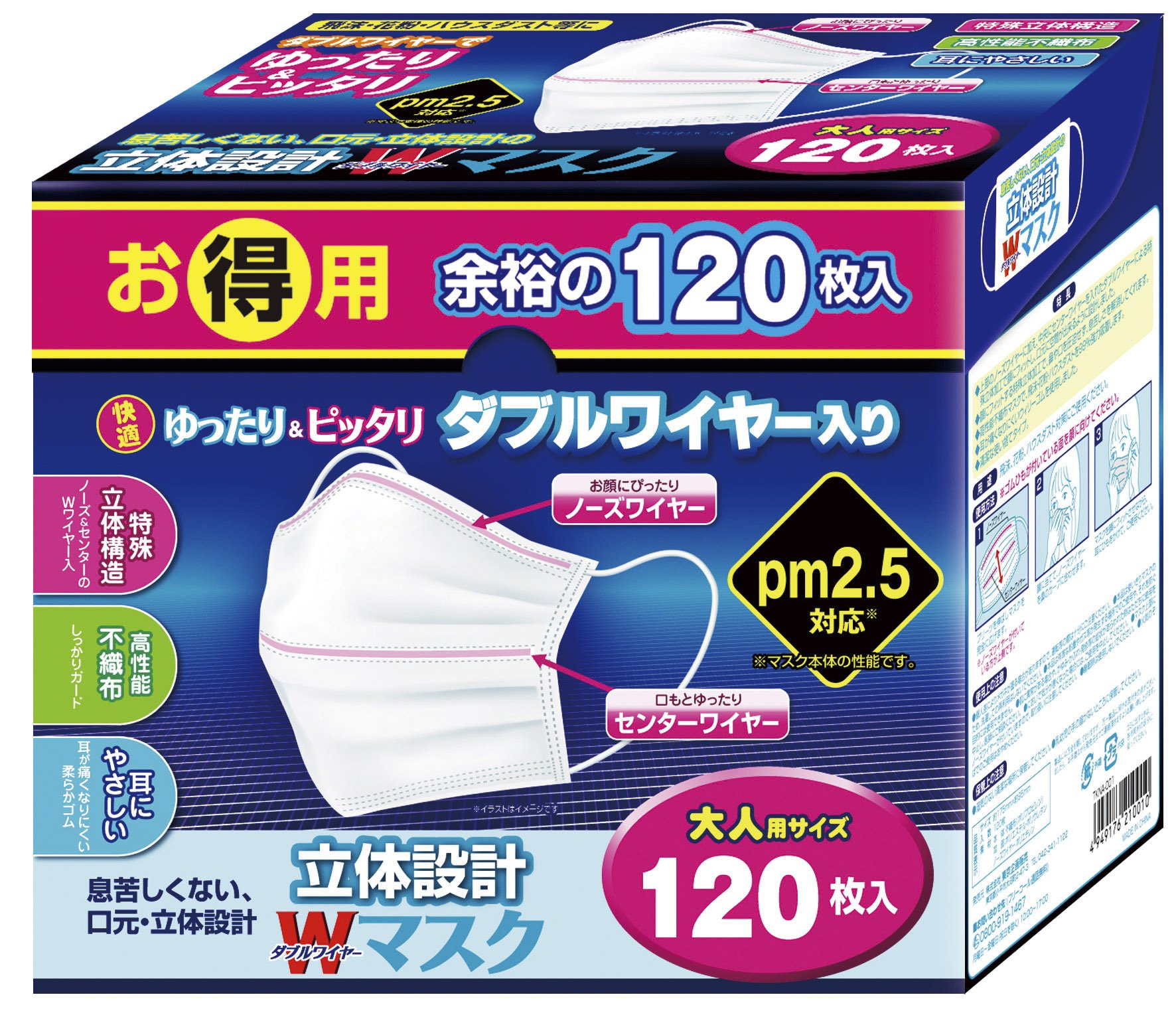 Japan Facemask - 120 sheets Tokyo planning selling three-dimensional design W wire mask adult *AF27*