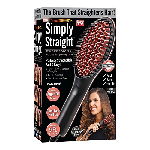 Simply Straight Pro, Professional Quality Hair Straightening Brush. Tourmaline Ceramic, 9 ft. Swivel Cord, ultra fast heat up