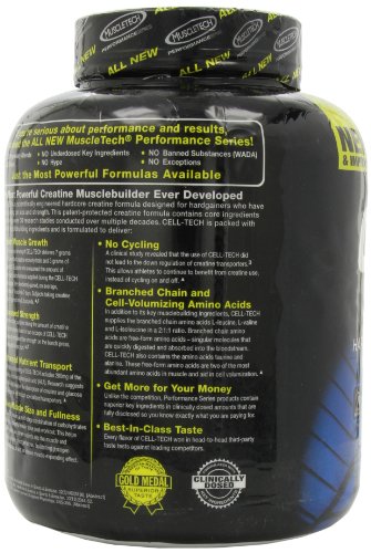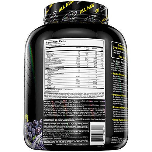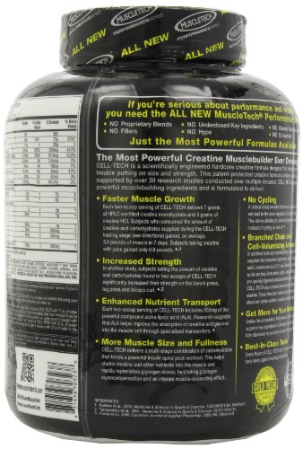 Studio : MuscleTech Publisher : MuscleTech Binding : Health and Beauty Product Description Each two-scoop serving of CellTech micronized creatine powder delivers 7g of HPLC-certified creatine monohydrate and 3 grams of creatine HCl. This dose of creatine is far higher than most creatine products, and yet those creatine products don't utilize a delivery system! CellTech creatine powder delivers a multi-stage combination of carbohydrates, including glucose polymers, dextrose, ModCarb (oat bran, quinoa, buckwheat, millet), waxy maize and highly branched cyclic dextrin totaling 75g per two scoops. After each max serving of CellTech, insulin levels rapidly peak in the bloodstream, priming muscles for maximum creatine hyper saturation and retention. CellTech creatine powder is a true third generation creatine formula that harnesses the anabolic power of insulin and is so powerful that it has not only stood the test of time, but has become legendary for its ability to pack on mass, size and strength like no other creatine formula before or since. 0
