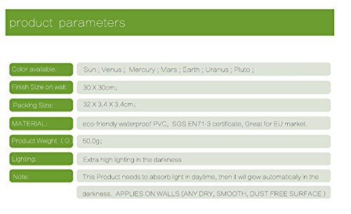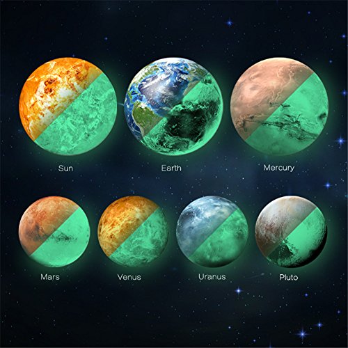 -. Title : Creative Planets Glow in the Dark Wall or Ceiling Stickers, Luminous Stickers Removable Adhesive Walls Decal Art Mural for Kids' Room-30CM