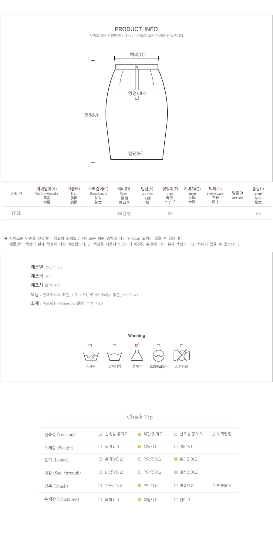 도너츠 니트 스커트 ⓒ 베이직하게 즐기기 좋은 스커트를 준비했어요 허리부분 밴딩으로 되어있어 편안하게 입으실수 있으며 중앙 단추장식으로 밋밋하지 않은 포인트를 주었어요 미디기장으로 부담없이 데일리로 입으실수 있구요 밑단부분 트임으로 활동성을 좋게 해주었어요 베이직한 컬러로 어디에나 무난하게 매치가 가능하며 신축성이 좋아 편안하게 입으실수 있어요. model 착용 사이즈 : Free(44-55반) 세리 모델은 Free 사이즈를 착용했어요~^^ 44~55반까지 무난하게 착용하실 수 있어요.