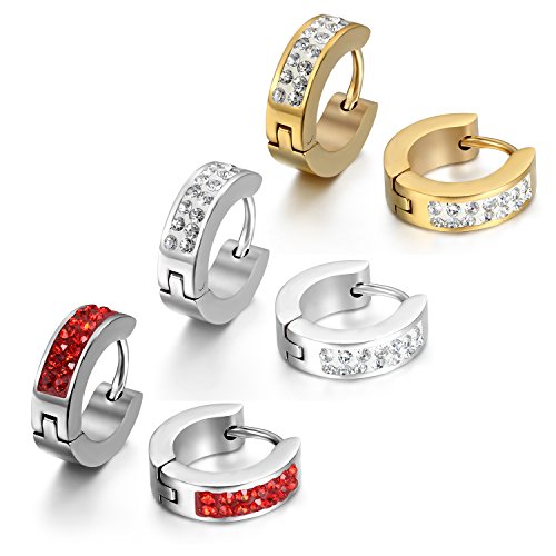-. Title : Cupimatch 3 Pairs Stainless Steel Shiny CZ Hinged Hie Hoop Earrings Valentine's Day Gift Set for Men Women
