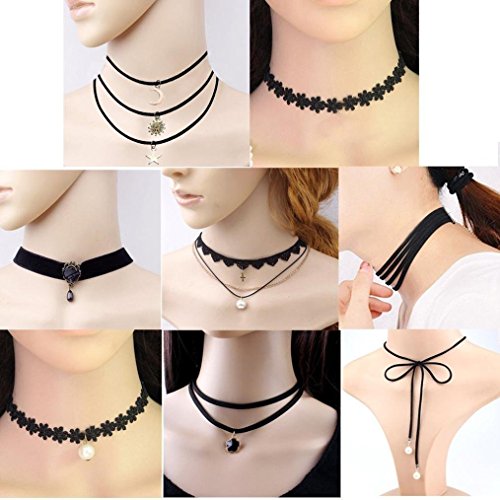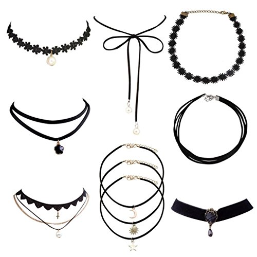 -. Title : LUQUAN 10 Pieces Choker Necklace Set Stretch Velvet Classic Gothic Tattoo Lace Choker