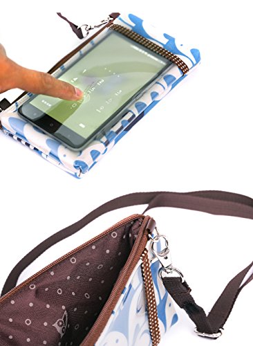 (Approximately Measured) the phone pouch: 6.5" X 3.5" X 0.7" / Back Compartment with Transparent cover: 6.3" X 3.7"/ Adjustable Strap: Maximum 51.2", Minimum 27.6"