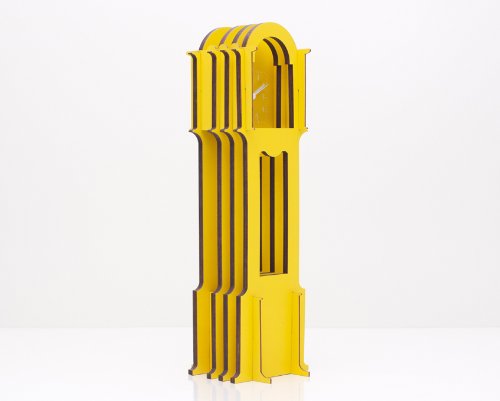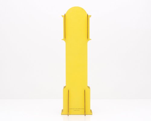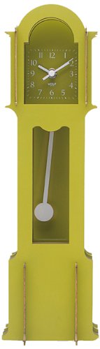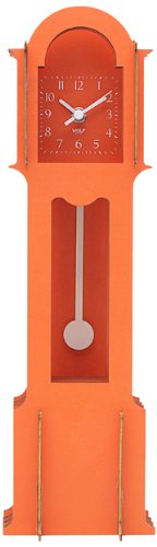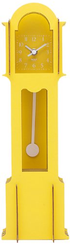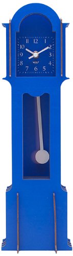 Wooden Mini Jigsaw Grandfather Clock by Wolf. Wolf Designs offers european craftsmanship, quality materials, patented technology, and almost two centuries of refinement and innovation! This Mini Jigsaw Grandfather Clock creates a 3-dimensional appearance using four flat wooden cross-sections stacked back-to-front, reminiscent of a pop-up book construction. Requires (1) AA Battery (not included). Materials: Wood, Electronic Components. Assembled Dimensions: 5.25" L x 4.75" W x 16" H. Weight: 2.65 lbs.Feature