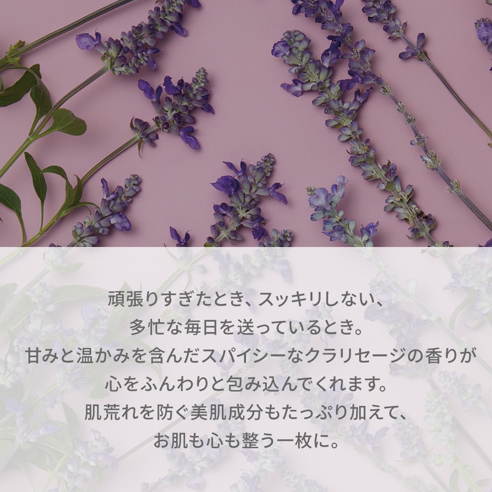 The fragrance of spicy clary sage including sweetness and warmth will softly envelop the roughness of the heart.