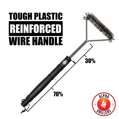 - OPTIMAL HANDLE LENGTH. Through extensive testing we have found 18 inches to be the best length for a grill brush. Long enough that your hand wont get burnt, but short enough that you retain excellent leverage and control while cleaning your grate.