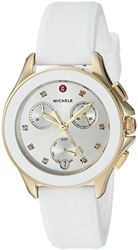 -. Title : Michele Womens 34.5mm, Cape Chrono Gold/White