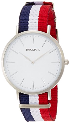 -. Title : [ブルッキアーナ]BROOKIANA ラウンドスリム 薄型 40mm 2針 シルバーホワイト×トリコロールナイロンベルト 腕時計 BA3102-SWNTR