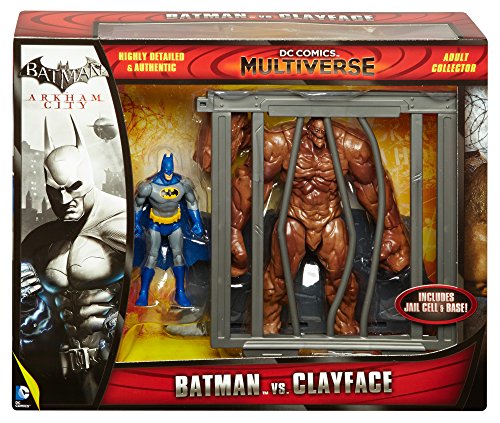 -. Binding : Toy -. Brand : Mattel -. EAN : 0887961054132 -. Feature : Expanding the DC Comics Multiverse, come these popular characters from the Arkham City video games / Highly articulated, highly detailed, dynamically authentic 4" Batman is paired with true-to-scale giant DC Super-Villain Clayface / Batman wears Classic blue and grey Comic Skin and Clayface features an interchangeable hammer fist, to unleash shape-shifting mayhem! / Display the adversaries in the included Arkham jail cell base / Collect the other assortment pairs and stage a massive prison breakout for the ultimate battle of good versus evil right out of the pack -. IsAdultProduct : 0 -. ItemPartNumber : CFB21 -. Label : DC Comics -. Manufacturer : DC Comics -. Model : CFB21 -. MPN : CFB21 -. PackageQuantity : 1 -. PartNumber : CFB21 -. ProductGroup : Toy -. ProductTypeName : TOYS_AND_GAMES -. Publisher : DC Comics -. Studio : DC Comics -. Title : DC Comics Multiverse 4-Inch Classic Comic Skin Batman and Clayface Figure 2-Pack -. UPC : 887961054132 -. Warranty : 1 year warranty against manufacturer defects