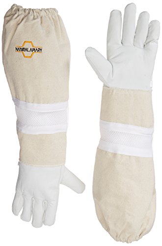 NATURAL APIARY - Goatskin - Beekeeping Gloves - Ventilated Sleeves - Sting Proof Cuffs - Extra Long Extra Long Twill Elasticated Gauntlets - Medium