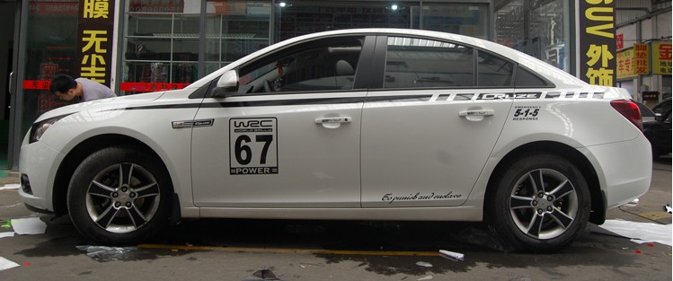 2. Strip part or all of the backing paper, set a good position, the fixed upper end, the sticker affixed to the car body from top to bottom;