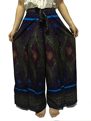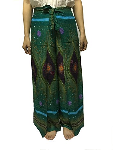 -. Title : The Loosefit Thai Wrap Palazzo Pants Wide Open Legs Boho Yoga - Feather