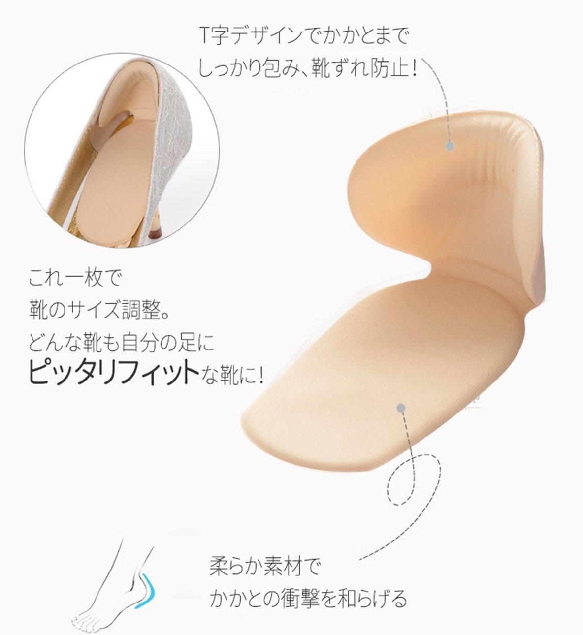 While guarding the heel that often shoes off by making it T-shaped, there is no worry of being shifted by covering the soles of the feet.